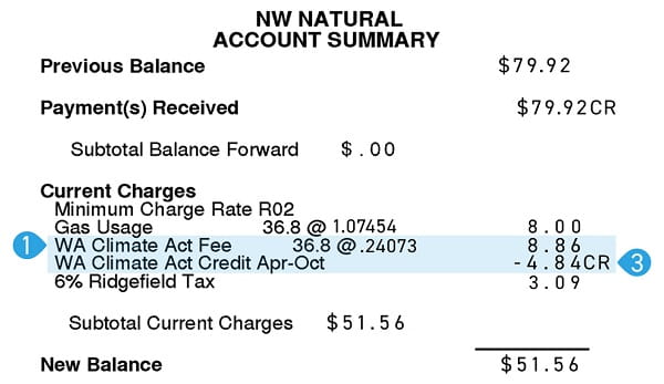 The rate adjustment has two components that follow Washington’s rules: The Climate Act Fee and Climate Act Credit.