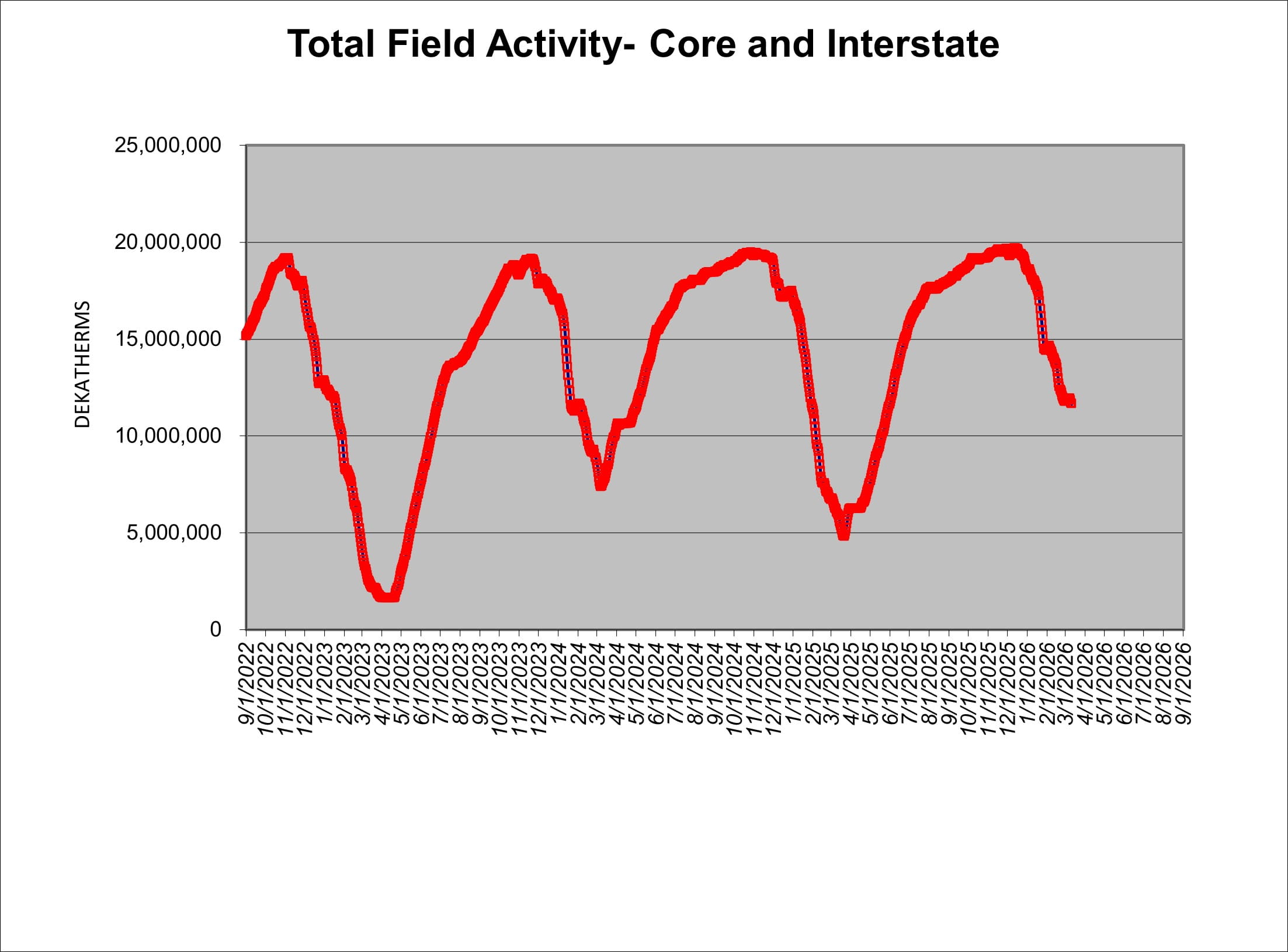 This chart is updated on a weekly basis, but NW Natural makes no guarantee or warranty to any party as to the accuracy of its data or that the chart can be relied on to predict future Mist activity.