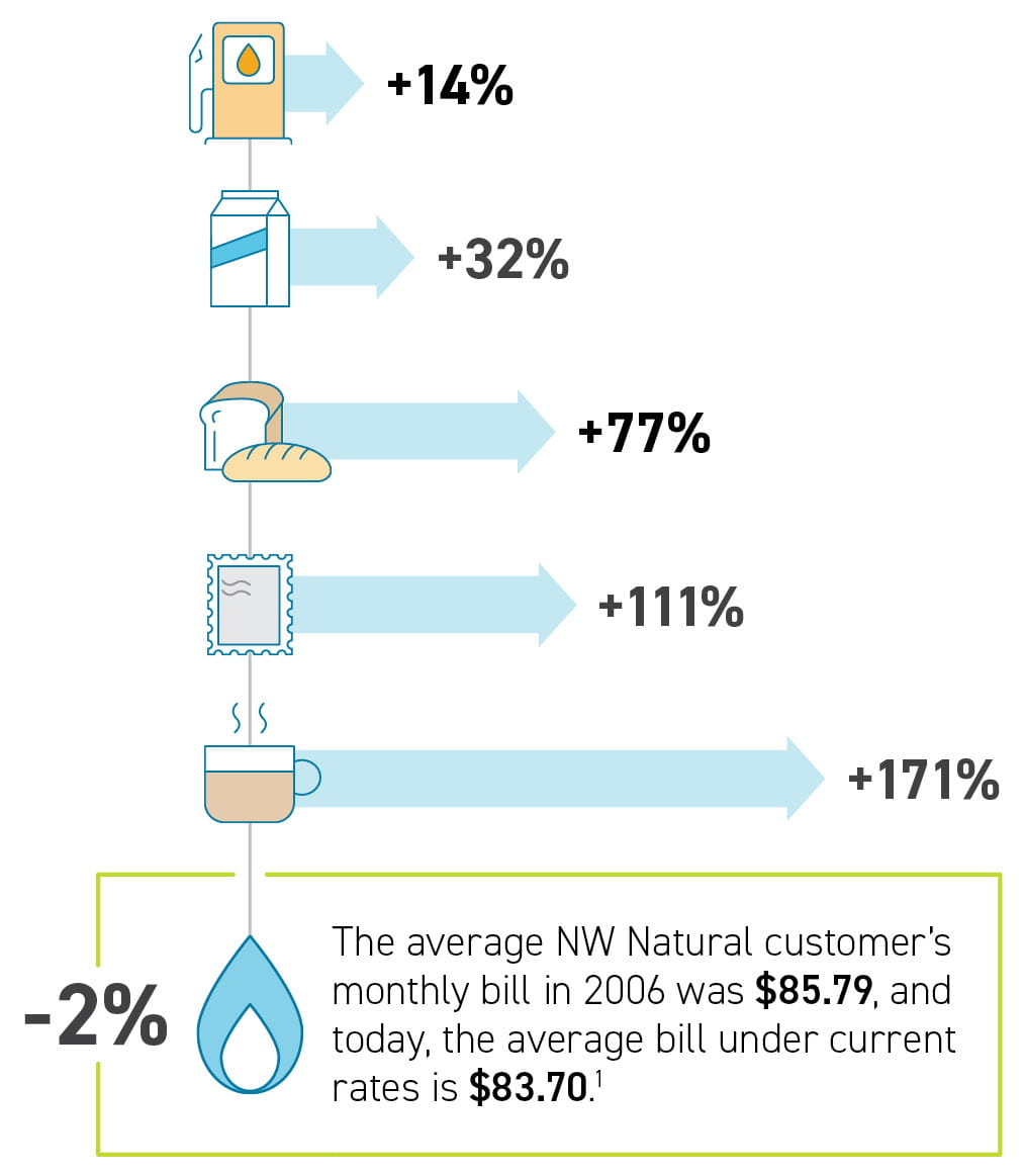 [1] National data from Bureau of Labor Statistics and U.S. Postal Service. NW Natural bills based on the average amount of gas used per residential customer in our Oregon/Washington service territory.